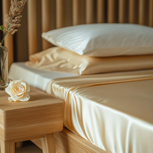 Stoc epuizatCearceaf de pat 100% din mătase – Ecru deschis