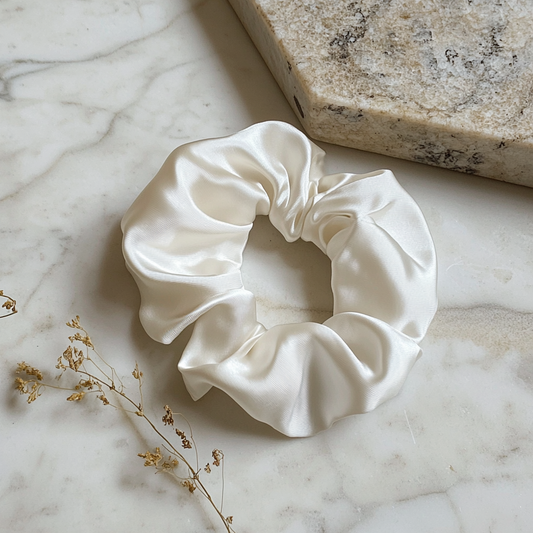 Stoc epuizatScrunchie din mătase „Alb Perlat” – mărimea XL