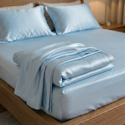 100% Cearșaf de pat din mătase naturală - „Albastru Senin”