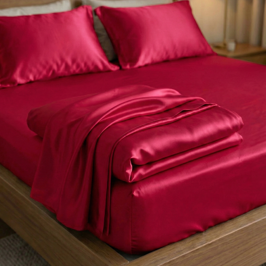 Cearșaf de pat din mătase 100% - „Roșu Elegant”
